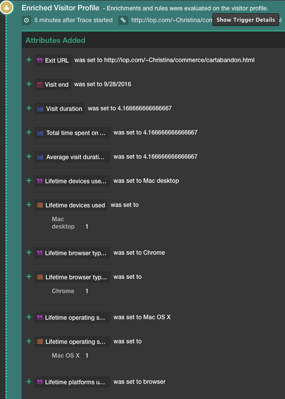 これがどのように機能するかを確認するには、トレースを実行し、コンバージョンファネルの各ステップをナビゲートします。