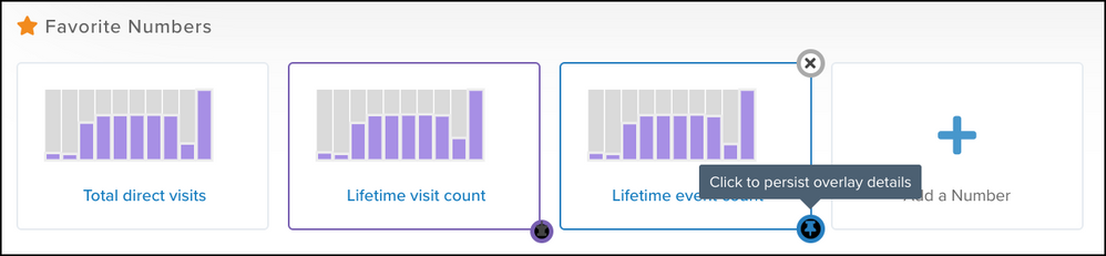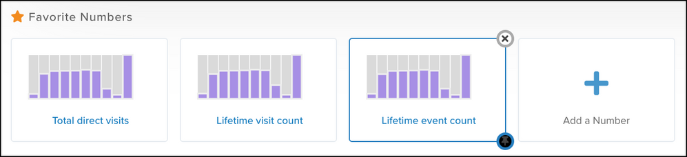 お気に入りの数字は、数字の属性のみを使用して作成され、訪問または訪問の属性に関連するフィルタリングされた数値結果のクイックビューを提供します。