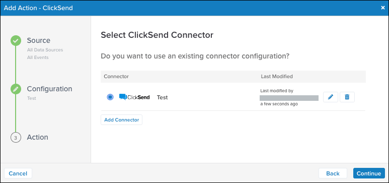 コネクターインターフェースのワークフローは、新しいサーバーサイドコネクターを追加するための簡単な手順をユーザーに案内し、各テクノロジーにすでに割り当てられているアクションオプションを表示します。