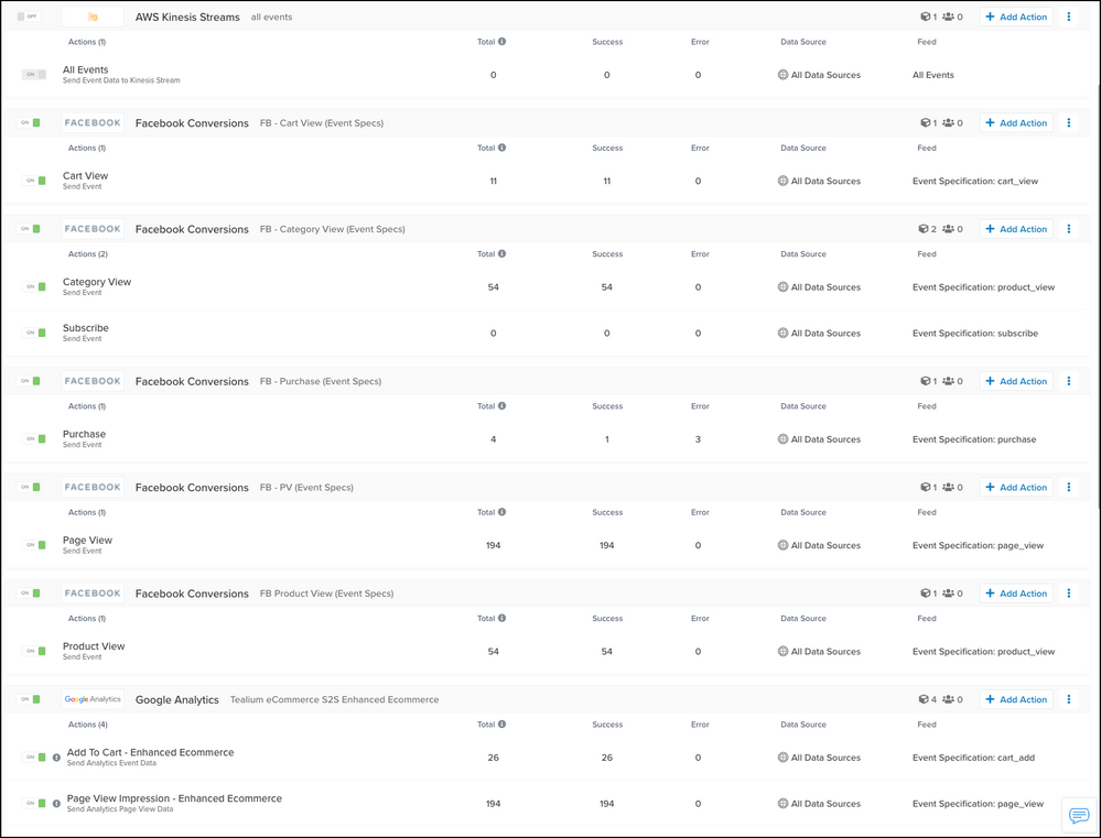 コネクターインターフェースは、AudienceStream Customer Data Platform(CDP)およびEventStream API Hubユーザーがサーバーサイドのコネクターとアクションを構築および維持する際に使用する直感的なワークフローを表示します。