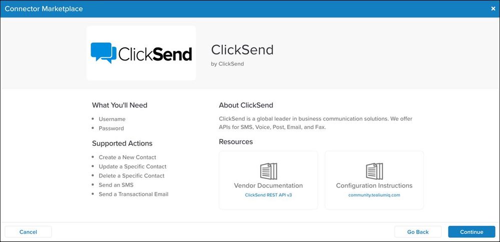 コネクターを追加すると、最初のページにはコネクターに関する情報がまとめられています。これには、必要なもの、サポートされているアクション、コネクターに関連する内部および外部リソースが含まれます。