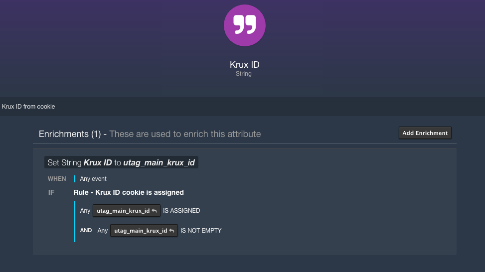 “Krux ID"という名前のVisitor-scoped String Attributeを作成します。この属性はutag_main_krux_idクッキーから取得します。