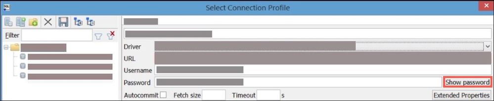 パスワードを表示する必要がある場合は、SQLWorkbench/Jのパスワード入力フィールドの横にあるShow passwordをクリックします。