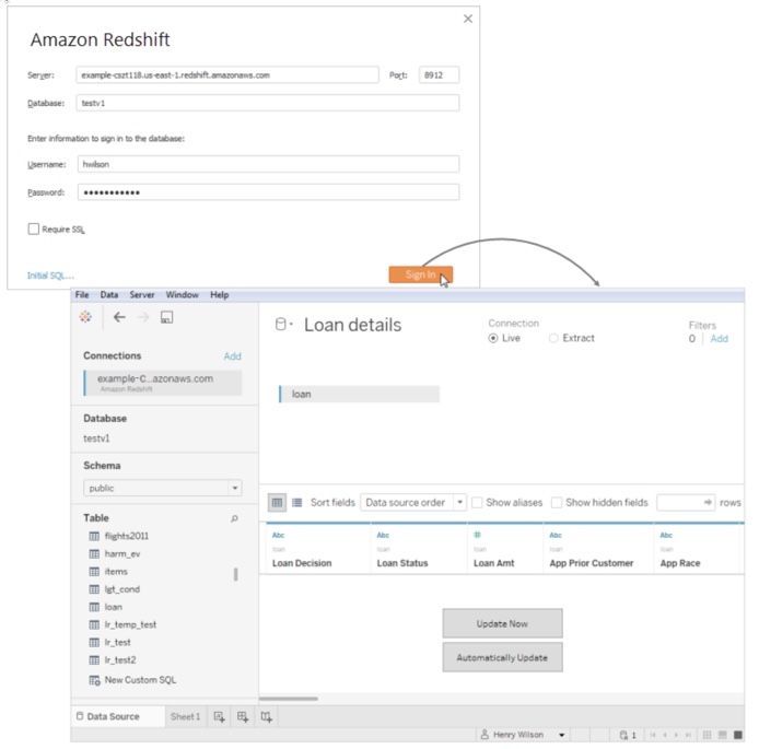 この記事では、Amazon RedshiftデータベースにTableauを接続し、データソースを構成する方法について説明しています。
