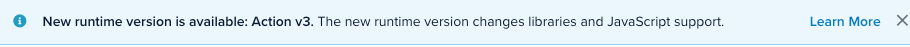 ランタイムバージョンは新機能を提供するために更新されることがあります。新しいランタイムバージョンが利用可能になると、以下のようなメッセージが関数概要ページに表示されます: