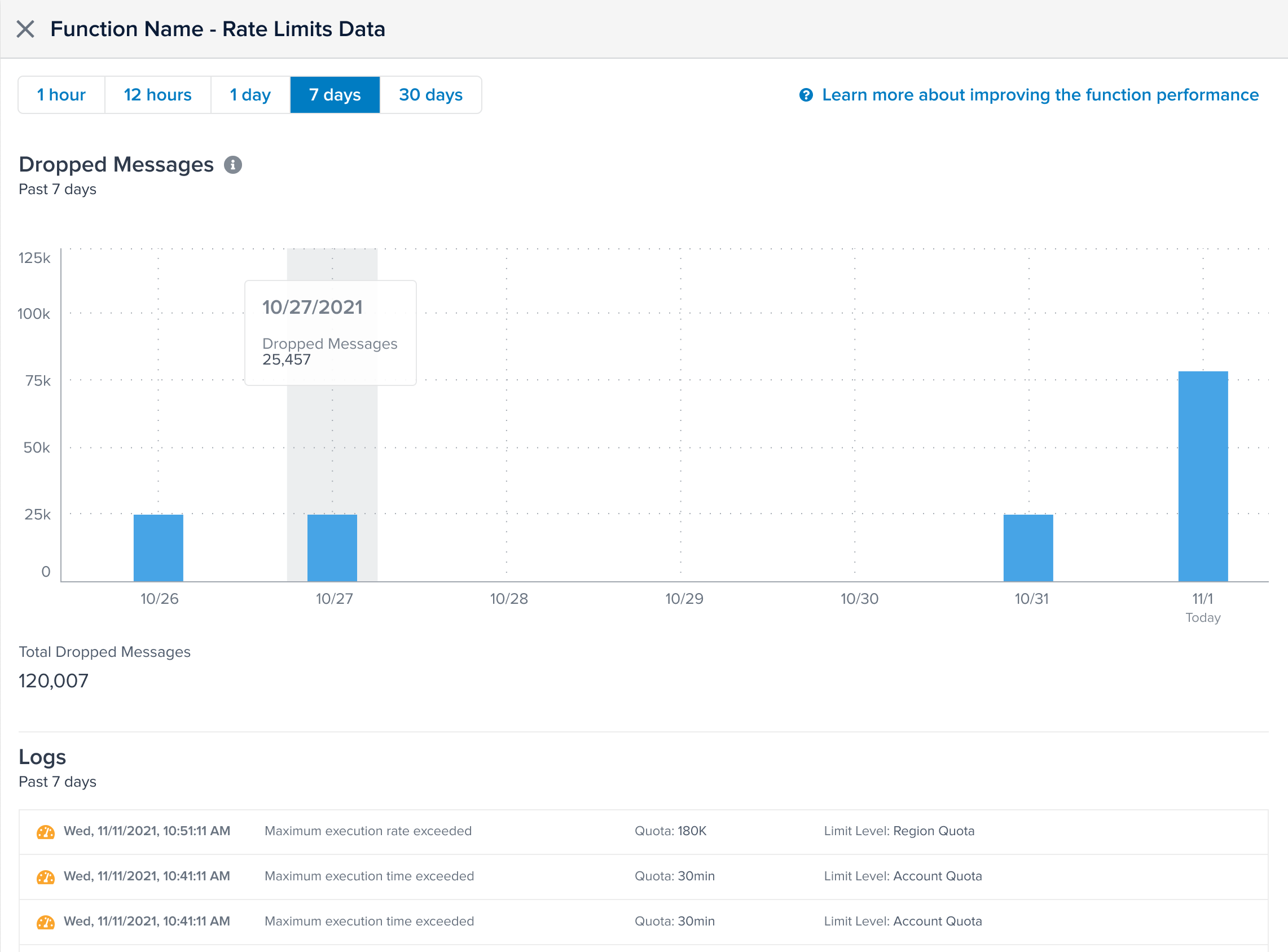 スロットルされた関数の詳細を表示する方法については、関数統計を表示するを参照してください。