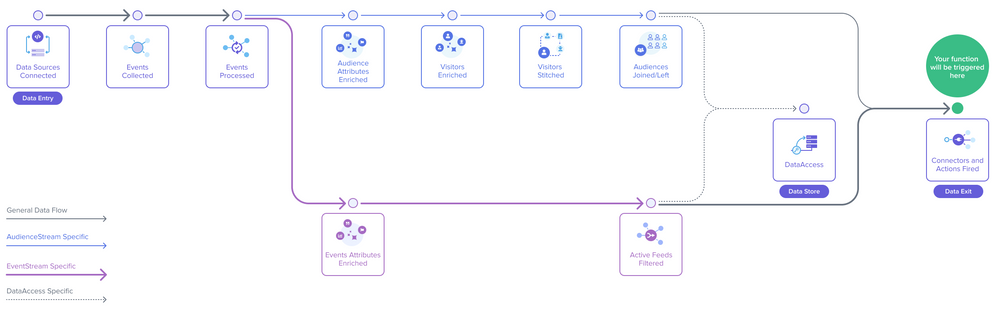 イベントと訪問関数は、イベントまたは訪問が処理された後に呼び出されます。次のデータパイプライン図に示されています。