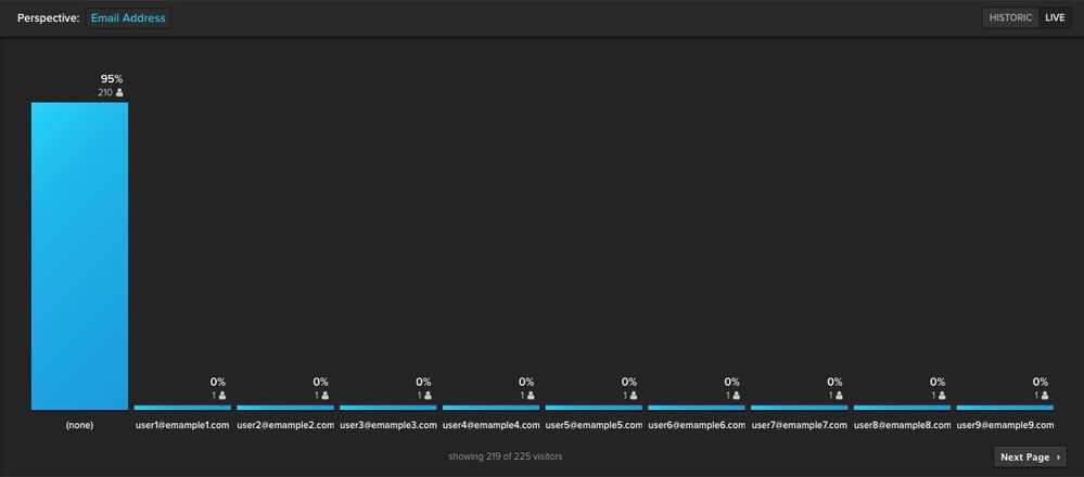 最初のバーは、**値なし “(none)”**の訪問の数を示しており、これはまだメールアドレスを提供していない未知の訪問を表しています。