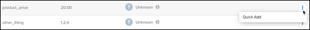 - 「Unknown」属性の隣にあるその他のオプションアイコンをクリックし、Quick Addをクリックします。