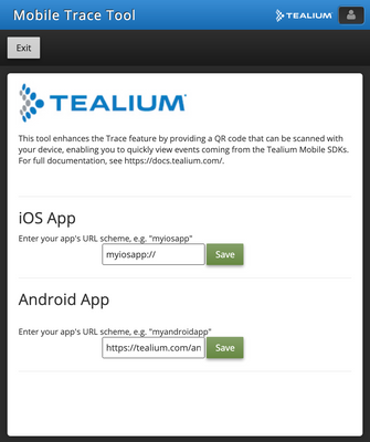 アプリを起動するURLスキームを確立したら、それらをモバイルトレースツールの入力フィールドに入力します。ツールは必要に応じてAndroidとiOSで異なるスキームをサポートしますが、一般的には両プラットフォームで同じです。