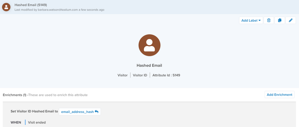 ユーザー識別子email_address_hash(イベント属性)によって構成される訪問ID属性Hashed Emailの例: