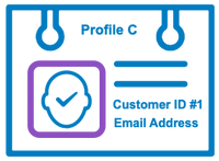 ユーザーが2番目のデバイスからウェブサイトを訪れ、同じメールアドレスを提供すると、メールアドレスはプロファイルAの訪問ID属性#2と一致し、2つのプロファイルがスティッチングされてプロファイルCが作成されます。