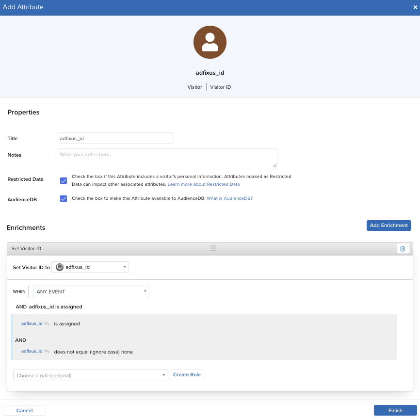 - AdFixus IDのために訪問属性を作成します。