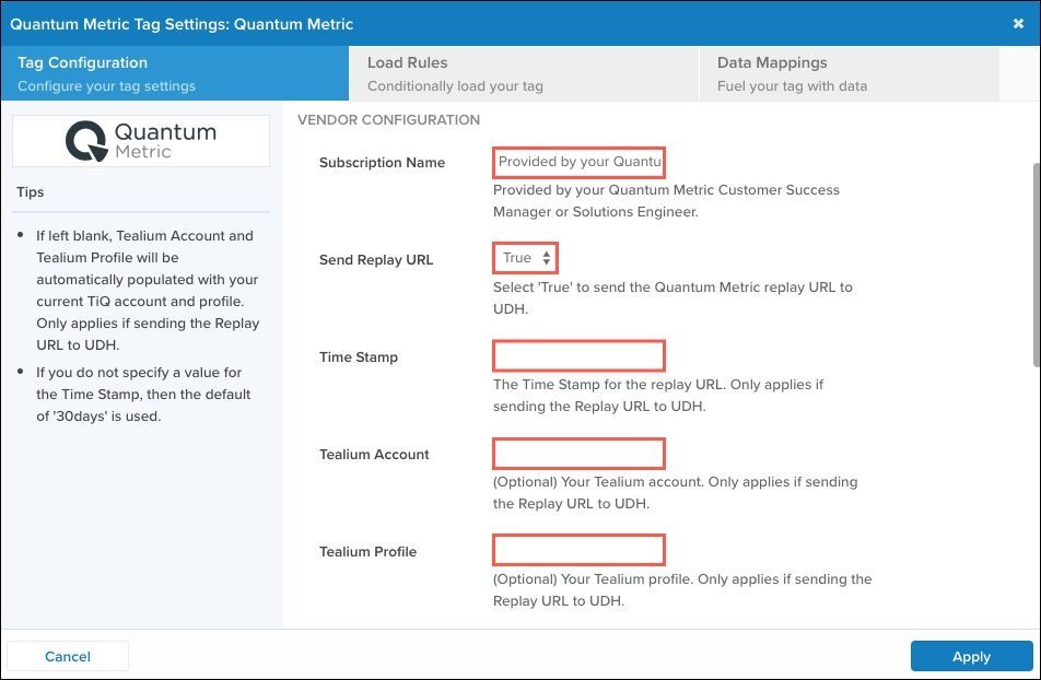 TealiumタグマーケットプレイスからQuantum Metricタグを追加し構成します: